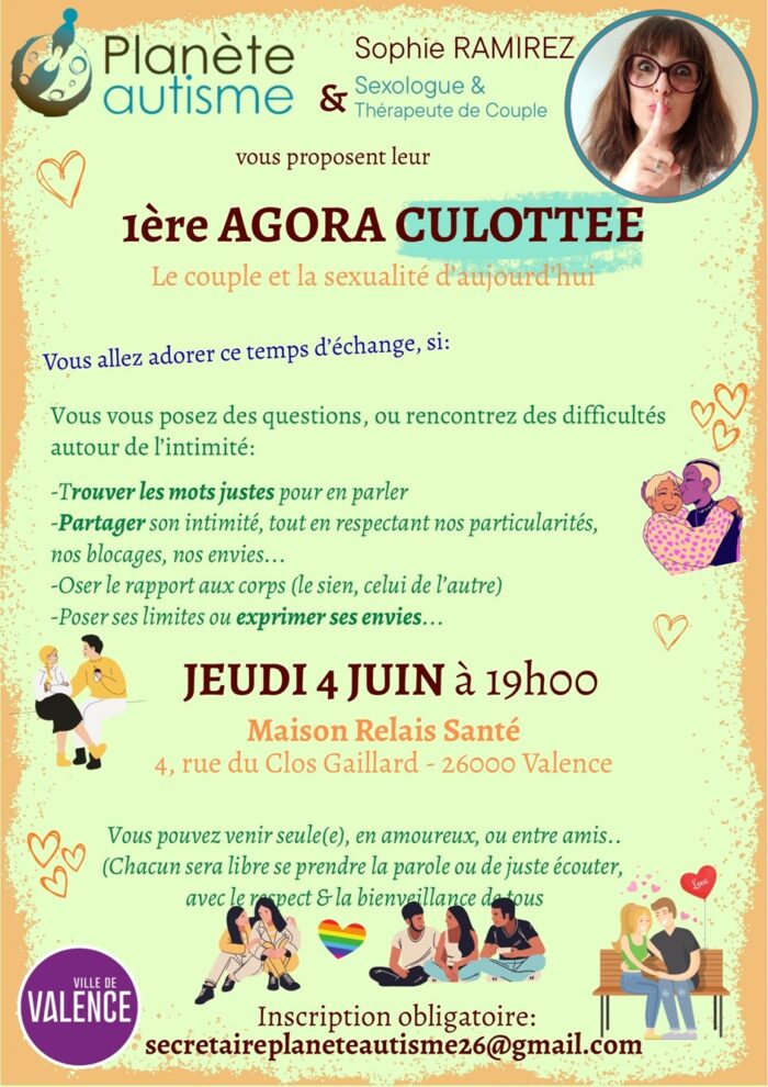 Le jeudi 04 juin 2026 à 19h00, l’association Planète Autisme Drôme-Ardèche propose sa 1ère agora culottée sur le thème :