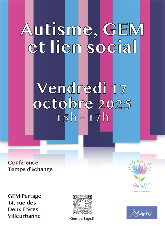 Conférence avec le GEM Partage : Autisme, GEM et lien social – 17 octobre 2025 – Villeurbanne