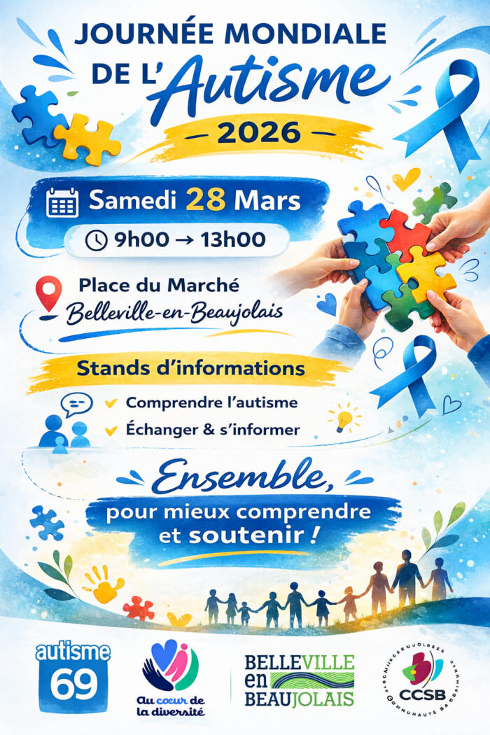 Journée Mondiale de l’autisme avec Autisme69 et Au Cœur de la Diversité – 28 mars 2026 – Belleville-en-Beaujolais